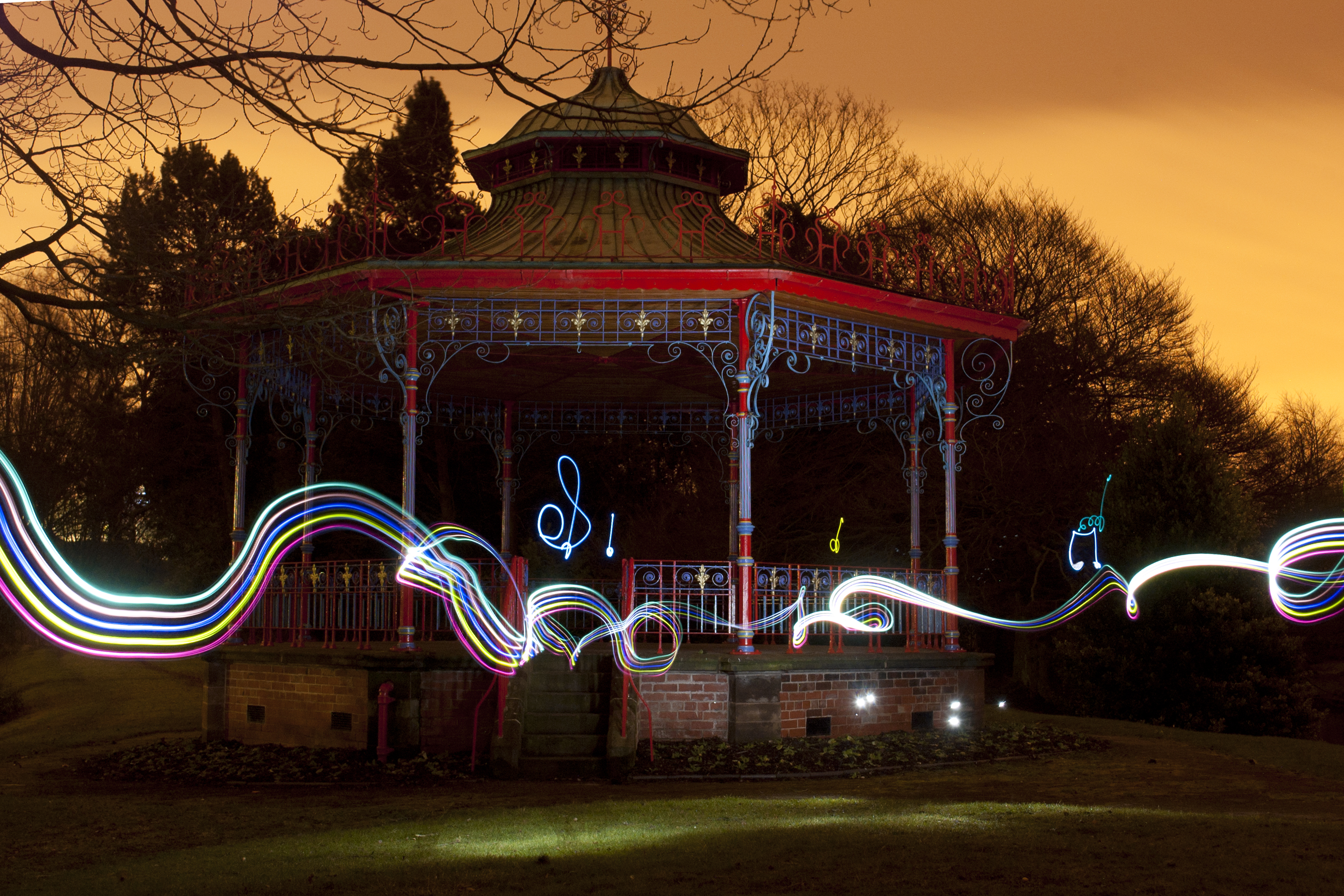 A light painting created at the bandstand at Sefton Park, Liverpool. To view more of my light paintings click on ‘Gallery’.